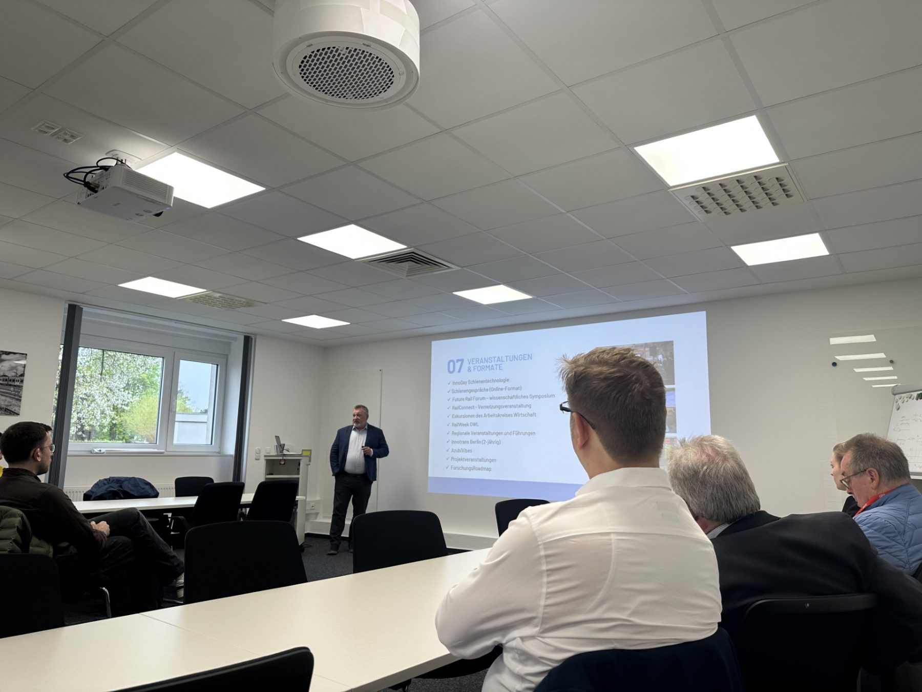 Am 16.04.2026 besuchte eine Gruppe von der DB InfraGo, dem Ingenieurbüro Drees & Sommer sowie Vertreter der Stadt Neustadt am Rübenberge den RailCampus OWL in Minden.